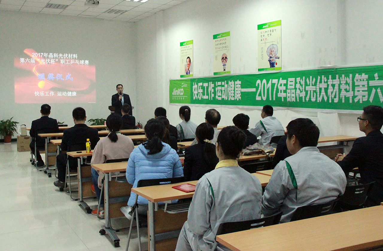 為促進(jìn)公司企業(yè)文化建設(shè),增強(qiáng)員工體質(zhì),加深同事間的了解與交流,培養(yǎng)員工團(tuán)結(jié)合作精神。在公司的大力支持下,公司人力行政部牽頭,于3月24日-29日內(nèi)多個(gè)下午組織了一場(chǎng)乒乓球比賽,經(jīng)過(guò)半個(gè)月的精心籌備, 3月24日14點(diǎn),2017年晶科光伏材料第六屆“光伏杯”職工乒乓球賽拉開(kāi)帷幕。
