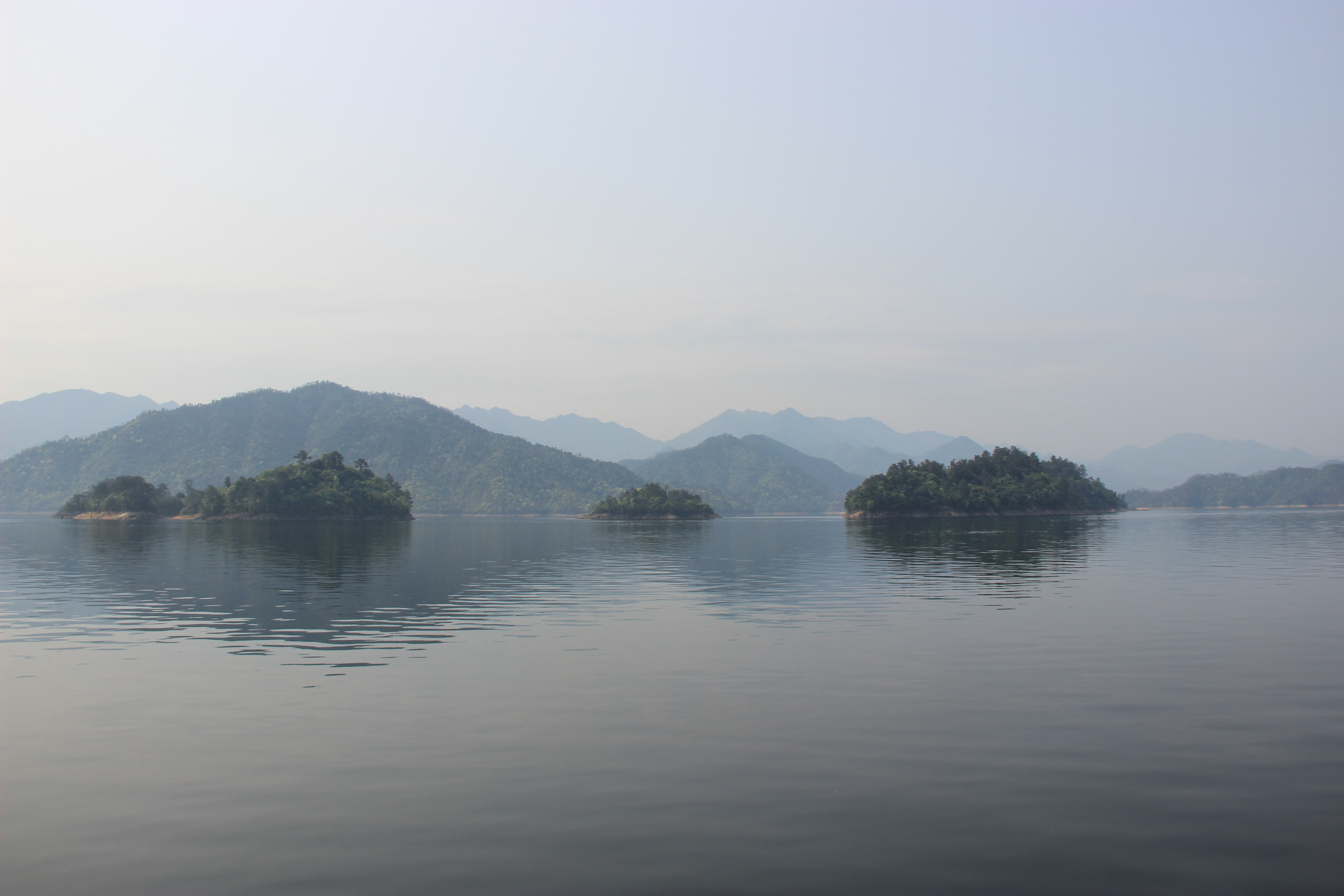 在第一日欣賞完靈棲洞、古村的美景后。第二日眾人來(lái)到了此行最期待的千島湖。千島湖之美,在于千島、秀水、金腰帶(島嶼與湖水相接處環(huán)繞著有一層金黃色的土帶,稱之名“金腰帶”)為主要特色景觀,是中國(guó)首批國(guó)家級(jí)風(fēng)景名勝區(qū)之一。在游船上賞湖島美景,登梅峰觀島覽全湖之盛?!安簧厦贩逵^群島,不識(shí)千島真面目”