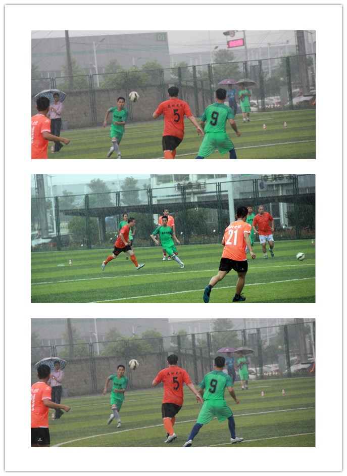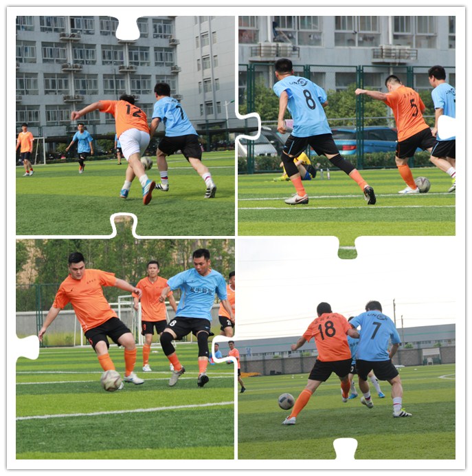 6月7日下午一點(diǎn)三十分,光伏隊(duì)和展宇隊(duì)在決賽場(chǎng)相遇。強(qiáng)強(qiáng)相逢,比賽剛開(kāi)場(chǎng)隊(duì)員們就迅速進(jìn)入了比賽狀態(tài),雙方都使出全力你拼我搶,沒(méi)有絲毫保留。上半場(chǎng)剛開(kāi)場(chǎng)10分鐘,12號(hào)就率先突破禁區(qū),向?qū)Ψ角蜷T發(fā)起沖鋒。連過(guò)兩人直接射門,可惜被對(duì)方守門員撲出。雖然沒(méi)有成功,但是光伏隊(duì)氣勢(shì)大漲,繼續(xù)在球場(chǎng)奮戰(zhàn),接連組織了多次強(qiáng)有力的進(jìn)攻。觀眾們的激情也被這樣精彩的球賽所點(diǎn)燃,大家紛紛為自己支持的球隊(duì)加油。下半場(chǎng)兩隊(duì)均有多次有精彩的射門,但都沒(méi)能突破彼此堅(jiān)固的防線,到了比賽時(shí)間結(jié)束雙方比分為0:0平。在仍未決出勝負(fù)的情況下,雙方?jīng)Q定采取殘酷的點(diǎn)球大戰(zhàn)。經(jīng)過(guò)一輪的點(diǎn)球,光伏隊(duì)錯(cuò)失一球,惜敗展宇。