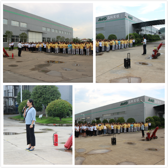 為響應(yīng)2019年全國(guó)安全生產(chǎn)月“防風(fēng)險(xiǎn)、除隱患、遏事故”主題,進(jìn)一步強(qiáng)化公司全體員工消防安全意識(shí),提高員工防火救災(zāi)的實(shí)戰(zhàn)技能,2019年6月20日下午,晶科光伏材料公司成功開(kāi)展消防應(yīng)急演練活動(dòng)。生產(chǎn)制造部門(mén)、相關(guān)職能部門(mén)以及保安隊(duì)等近四百余人參加了本次消防滅火演練,各部門(mén)負(fù)責(zé)人一同在演練現(xiàn)場(chǎng)觀摩。