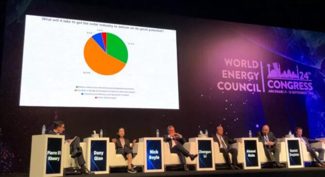 晶科能源副總裁錢晶女士代表公司,受邀出席“太陽能展望”重磅分論壇,與世界能源理事會(huì)、BP集團(tuán)、中東光伏行業(yè)協(xié)會(huì)等嘉賓共議如何克服間歇性以及土地利用等挑戰(zhàn),推動(dòng)太陽能產(chǎn)業(yè)迎來下一輪的飛速增長(zhǎng)。