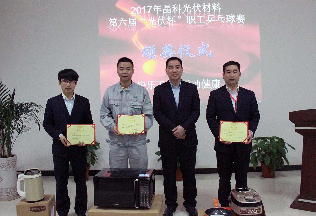 為促進公司企業(yè)文化建設(shè),增強員工體質(zhì),加深同事間的了解與交流,培養(yǎng)員工團結(jié)合作精神。在公司的大力支持下,公司人力行政部牽頭,于3月24日-29日內(nèi)多個下午組織了一場乒乓球比賽,經(jīng)過半個月的精心籌備, 3月24日14點,2017年晶科光伏材料第六屆“光伏杯”職工乒乓球賽拉開帷幕。