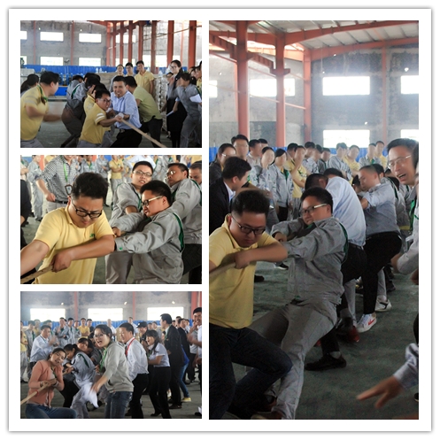 經(jīng)過(guò)一個(gè)小時(shí)的比賽后,金屬型材隊(duì)伍和PMC隊(duì)伍,進(jìn)入了男子組團(tuán)體拔河冠軍爭(zhēng)奪賽。由于雙方實(shí)力相當(dāng),難分高下,激烈賽況把本次活動(dòng)推向了高潮。兩隊(duì)隊(duì)員憋紅了臉,勒紫了手,金屬型材隊(duì)伍力壓群雄,獲得了這場(chǎng)強(qiáng)者間的較量,奪得了拔河比賽的冠軍。而女子組的戰(zhàn)況毫不遜于男子組,來(lái)自接線盒的巾幗和來(lái)自品質(zhì)部的英杰互相擦出了激烈火花,雙方各勝一局,最后一局在長(zhǎng)達(dá)2分鐘的僵持后終被接線盒隊(duì)伍拿下。在男女組冠軍角出后,本次活動(dòng)也在愉快的歡呼聲中結(jié)束。