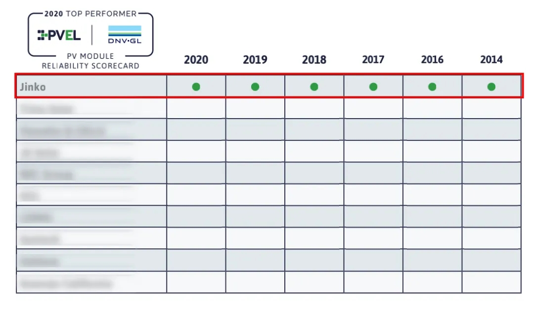 晶科能源連續(xù)六年斬獲PVEL/DNV GL光伏組件可靠性記分卡“表現(xiàn)最佳”榮譽(yù)